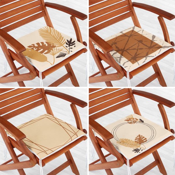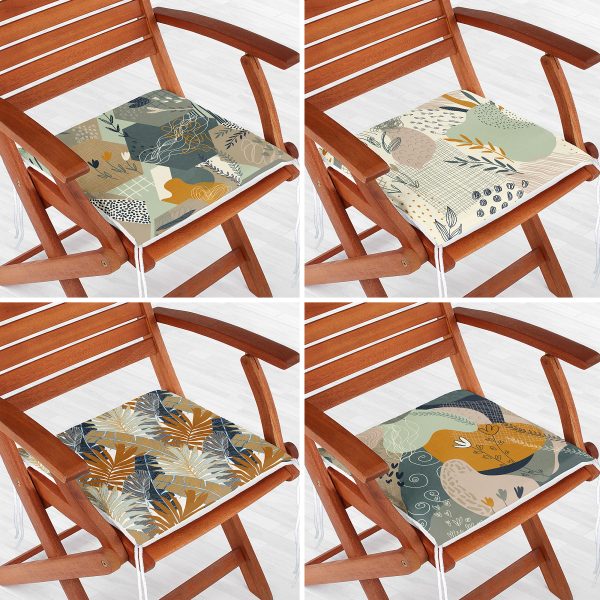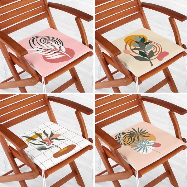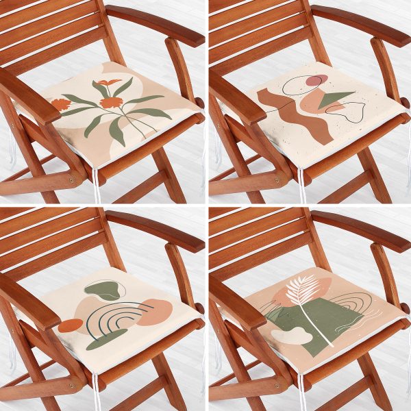 4’lü Renkli Çiçek & Yaprak Tasarımlı Dijital Baskılı Modern Fermuarlı Sandalye Minderi Seti