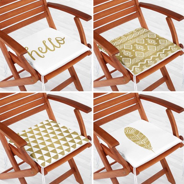 4’lü Beyaz Zemin Üzerinde Gold Detaylı Geometrik Desenli Modern Fermuarlı Sandalye Minderi Seti