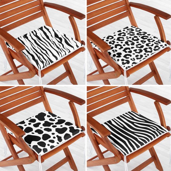 4’lü Beyaz Zemin Üzerinde Zebra Desenli Modern Fermuarlı Sandalye Minderi Seti