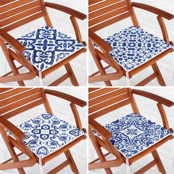 4’lü Beyaz Zemin Üzerinde Çini Desenli Modern Fermuarlı Sandalye Minderi Seti