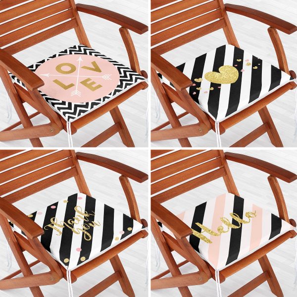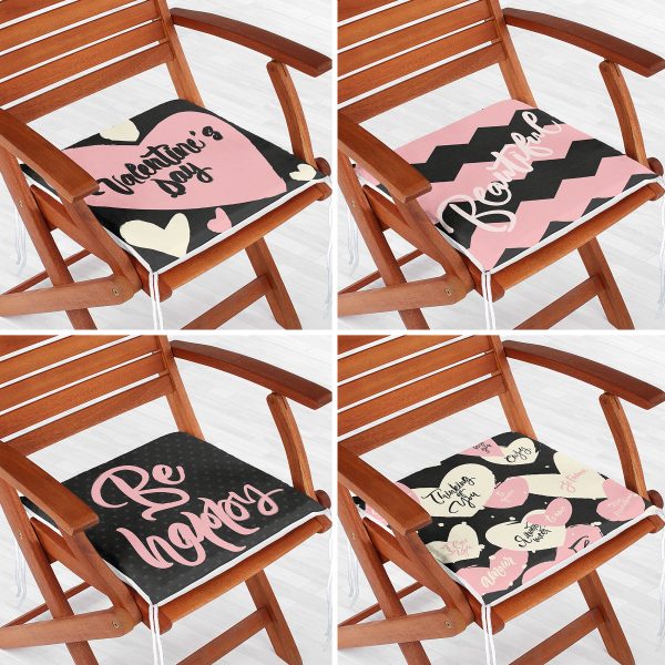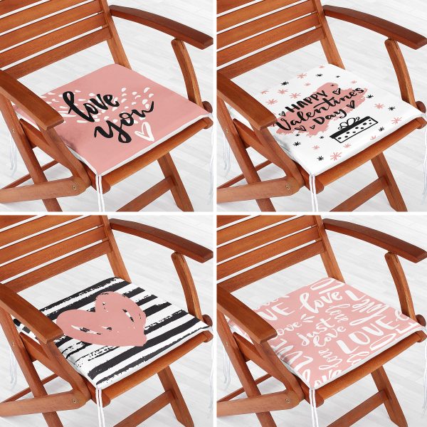4’lü Sevgililer Günü Konseptli Özel Tasarım Modern Kombin Fermuarlı Sandalye Minderi Seti