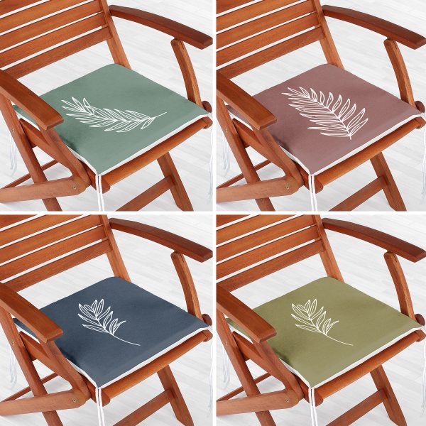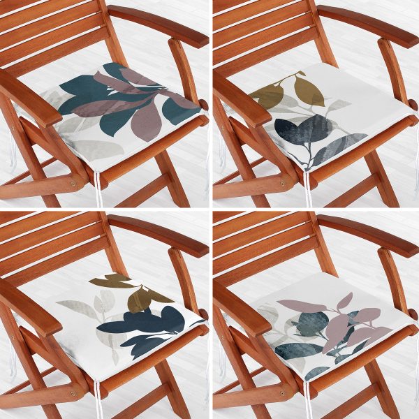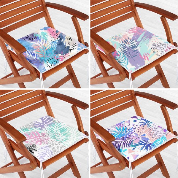 4’lü Pastel Renkli Yaprak Tasarımlı Dijital Baskılı Modern Fermuarlı Sandalye Minderi Seti