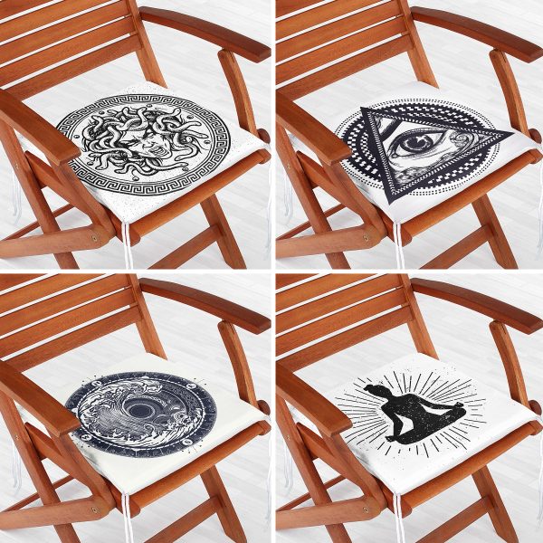 4’lü Modern Üçüncü Göz Motifli Fermuarlı Sandalye Minderi Seti