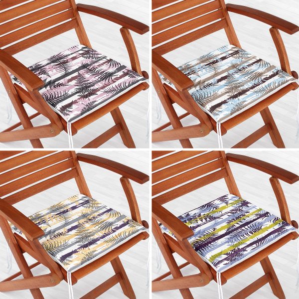 4’lü Renkli Zemin Üzerinde Yaprak Desenli Modern Fermuarlı Sandalye Minderi Seti