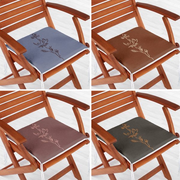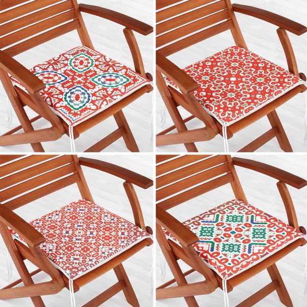4’lü Renkli Zeminde Beyaz Çiçek Motifli Fermuarlı Sandalye Minderi Seti
