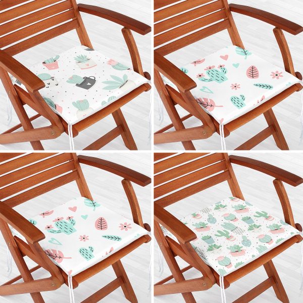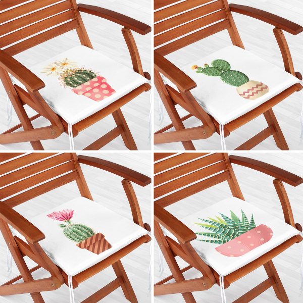 4’lü Sevimli Saksılı Kaktüs Tasarımlı Dijital Baskılı Modern Fermuarlı Sandalye Minderi Seti