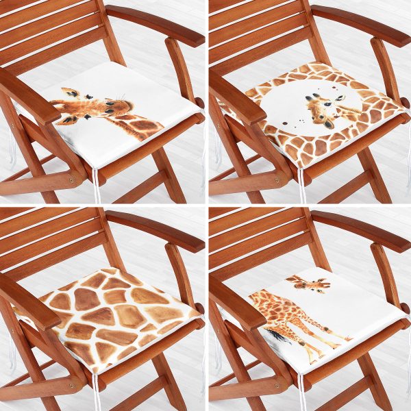 4’lü Özel Çizim Zürafa Tasarımlı Dijital Baskılı Modern Fermuarlı Sandalye Minderi Seti