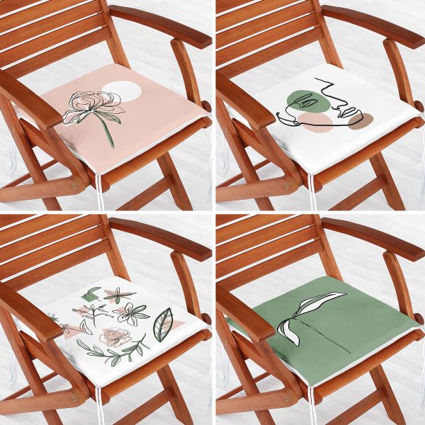 4’lü Onedraw Figürlü Çiçek Tasarımlı Fermuarlı Sandalye Minderi Seti