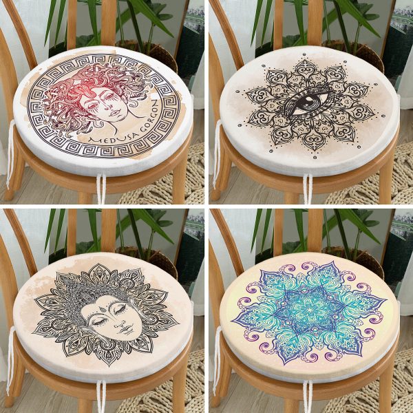 4’lü Medusa Gorgon Özel Tasarım Dijital Baskılı Yuvarlak Fermuarlı Sandalye Minderi Seti