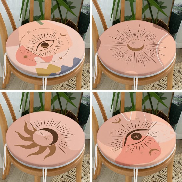 4’lü Nazar Boncuk Desenli Yuvarlak Fermuarlı Sandalye Minderi Seti