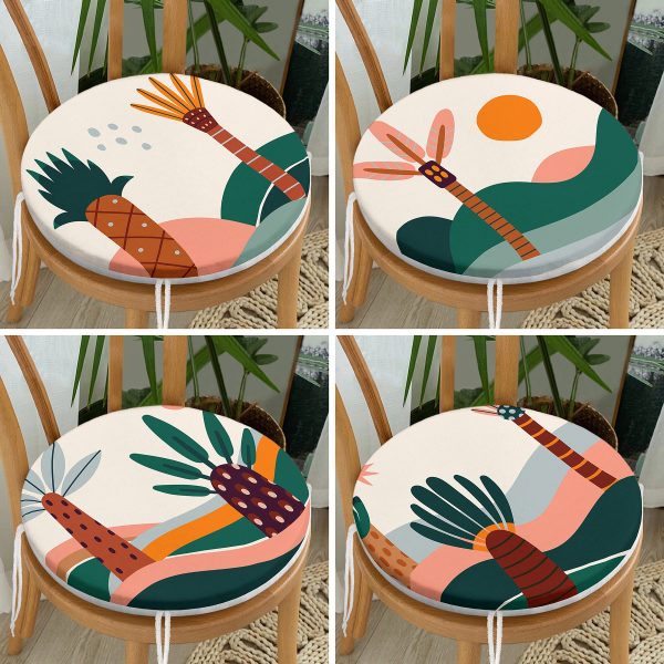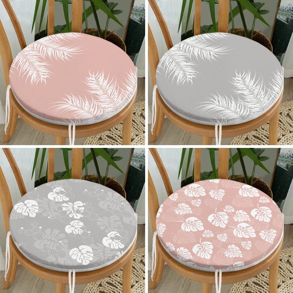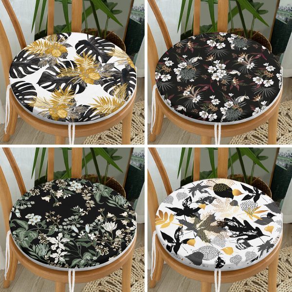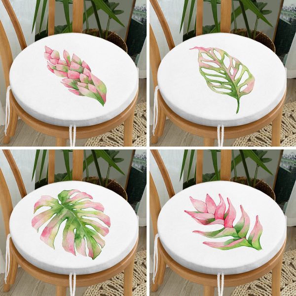 4’lü Egzotik Yaprak Tasarımlı Dijital Baskılı Modern Yuvarlak Fermuarlı Sandalye Minderi Seti