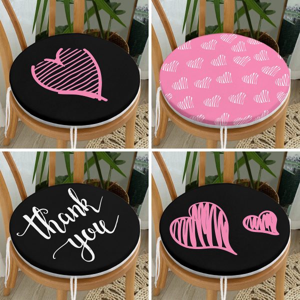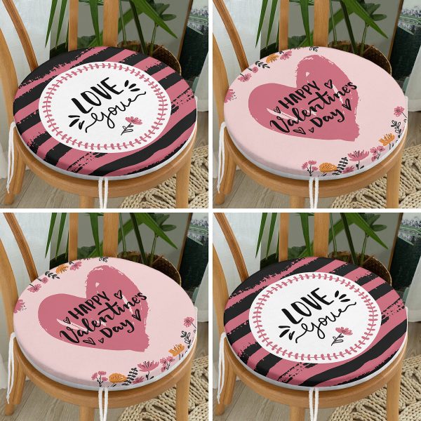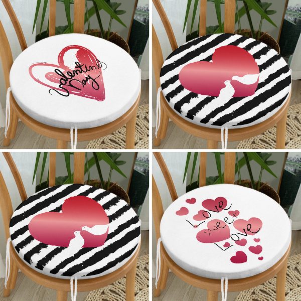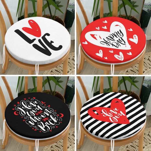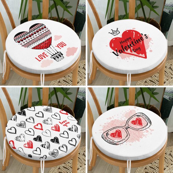 4’lü Sevgililer Günü Konseptli Özel Tasarım Modern Kombin Yuvarlak Fermuarlı Sandalye Minderi Seti