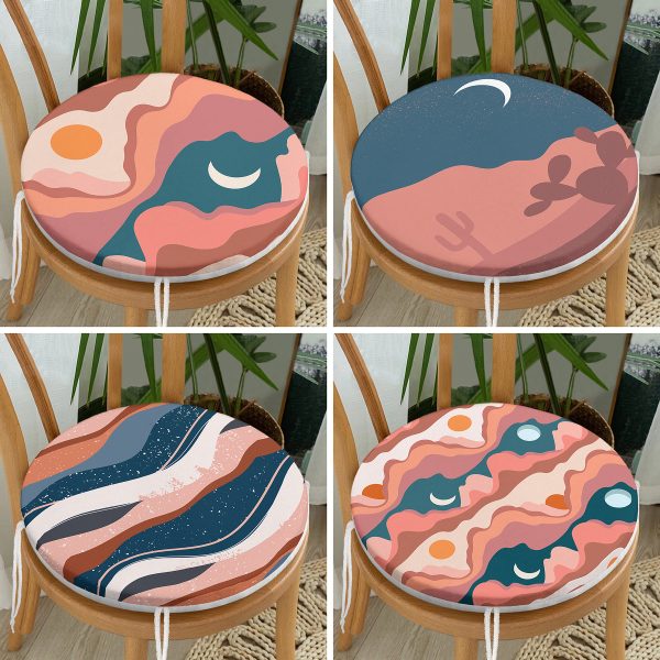 4’lü Dağ ve Ay Tasarımlı Dijital Baskılı Yuvarlak Fermuarlı Sandalye Minderi Seti