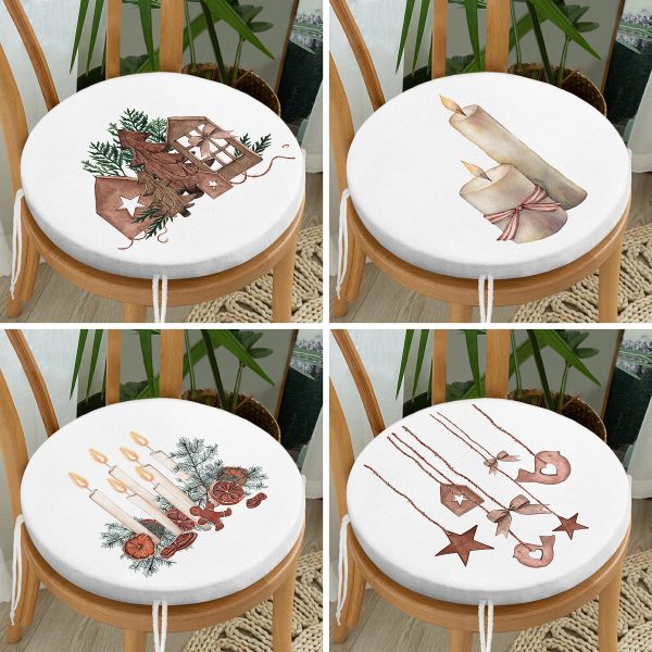 4’lü Özel Tasarım Mum Dekoratif Süs Tasarımlı Dijital Baskılı Modern Yuvarlak Fermuarlı Sandalye Minderi Seti