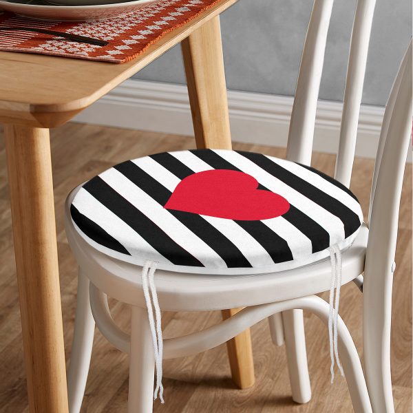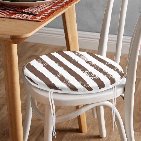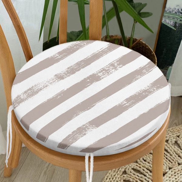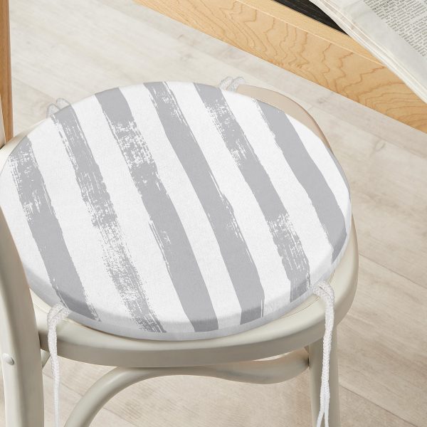 Siyah Beyaz Çizgili Yuvarlak Fermuarlı Sandalye Minderi
