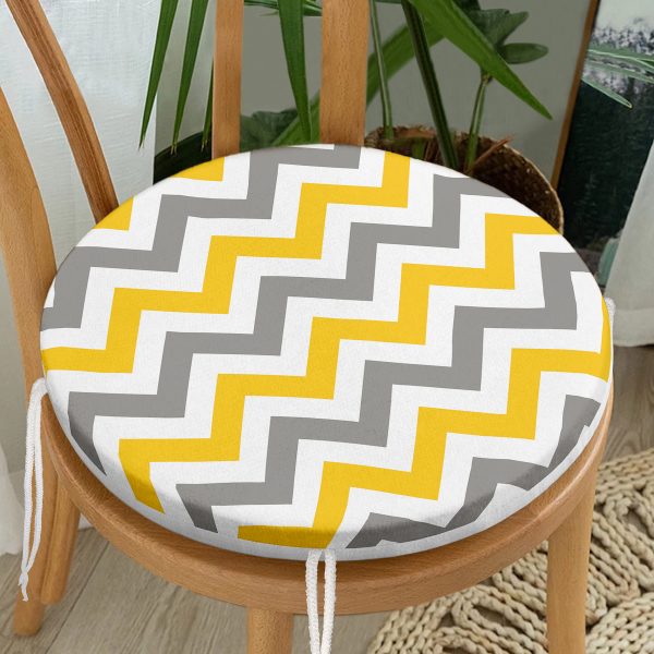 Modern Zikzak Desenli Dijital Baskılı Yuvarlak Fermuarlı Sandalye Minderi
