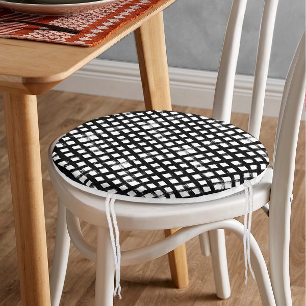 Beyaz Zemin Üzerinde Renkli Ekose Desenli Dijital Baskılı Modern Yuvarlak Fermuarlı Sandalye Minderi