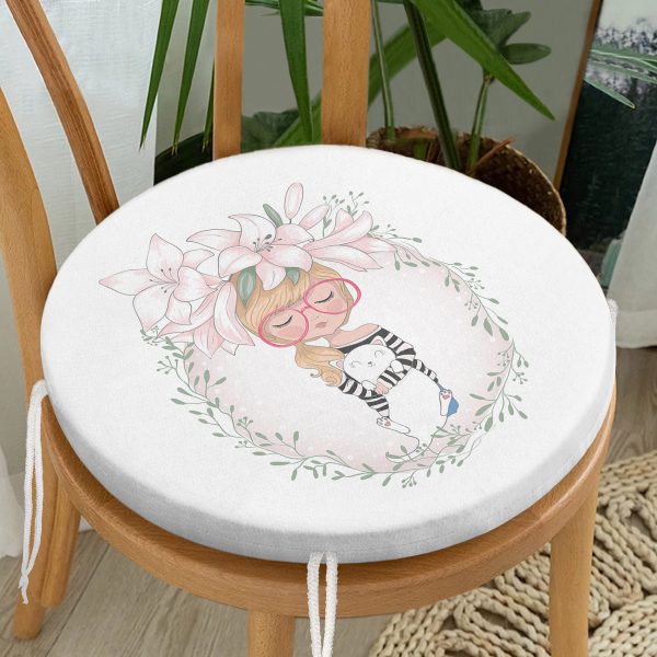 Fashion Girl Dijital Baskılı Modern Yuvarlak Fermuarlı Sandalye Minderi