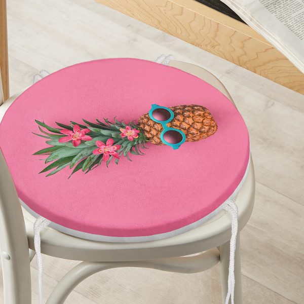 Fuşya Zeminli Ananas Desenli Modern Yuvarlak Fermuarlı Sandalye Minderi