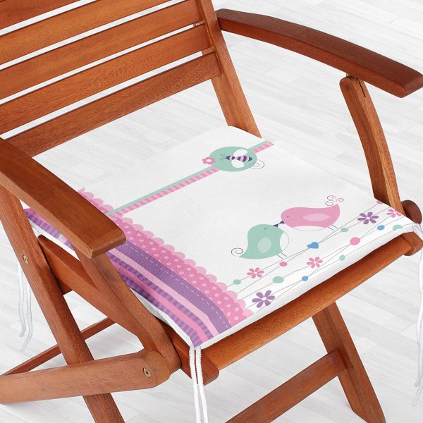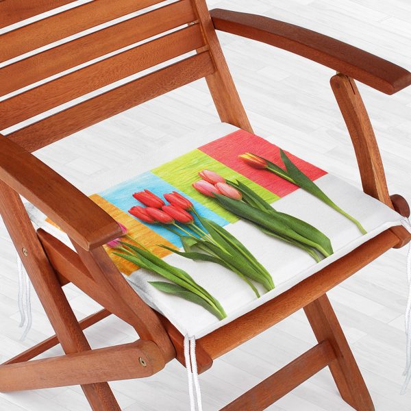 Pembe Lale Dekorati Kare Sandalye Minderi