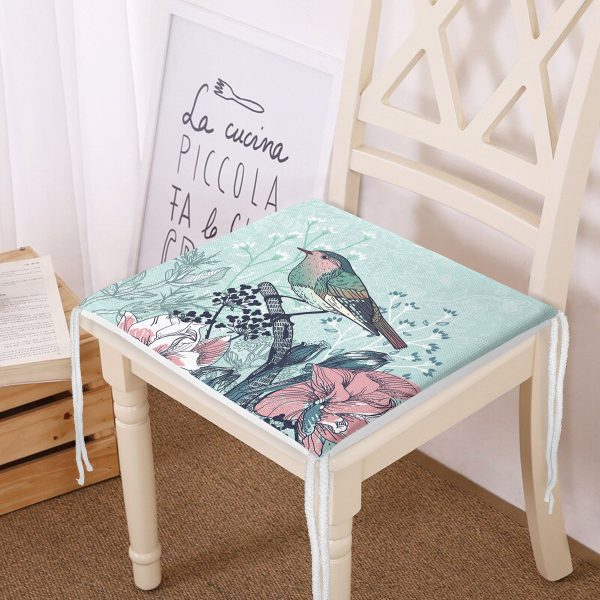 Baykuş Motifli Pofuduk Kare Sandalye Minderi 40x40cm Düğmeli