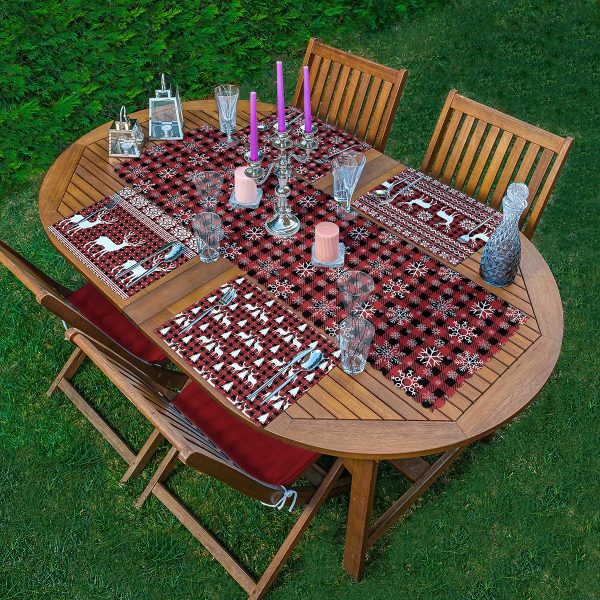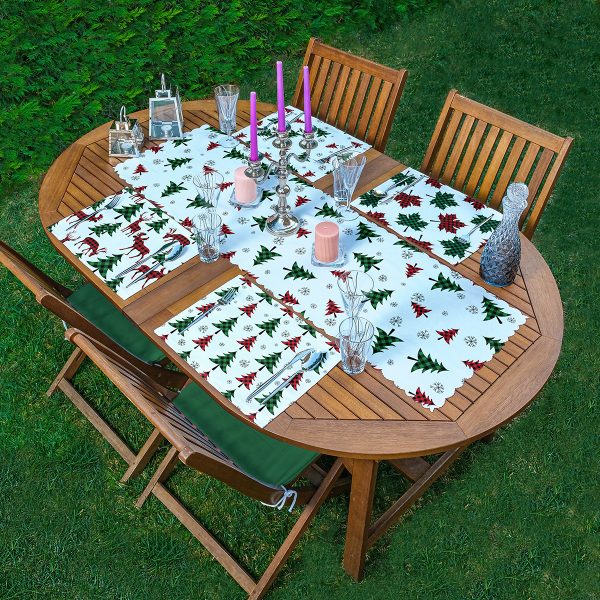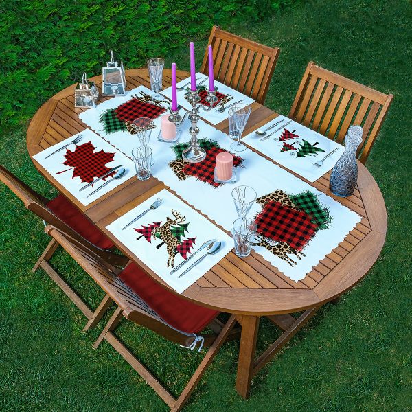 4+1 Ekose Tasarımlı Geyik & Çam Ağacı Motifli Amerikan Servis & Runner Seti
