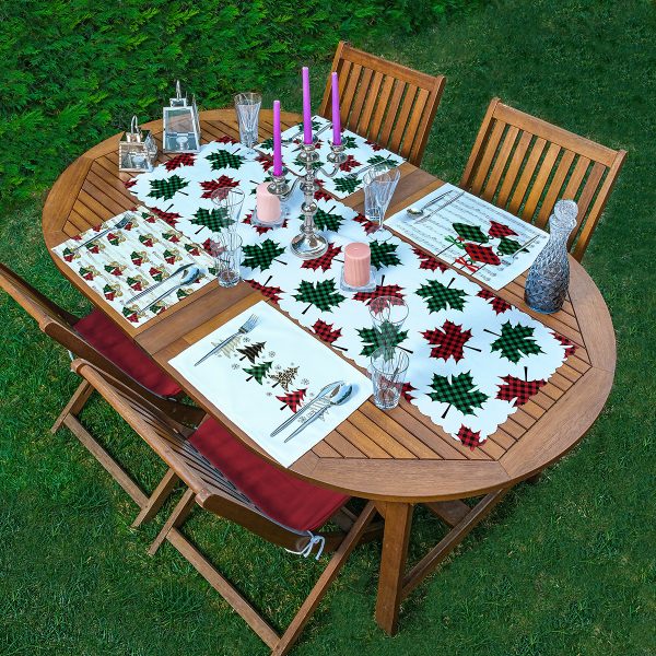4+1 Çam Ağacı Tasarımlı Ekose Motifli Amerikan Servis & Runner Seti