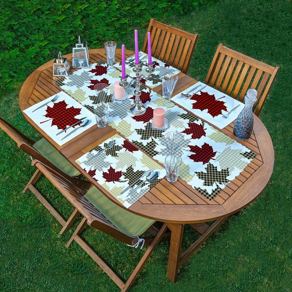 4+1 Ekose Motifli Çan & Yaprak Tasarımlı Amerikan Servis & Runner Seti
