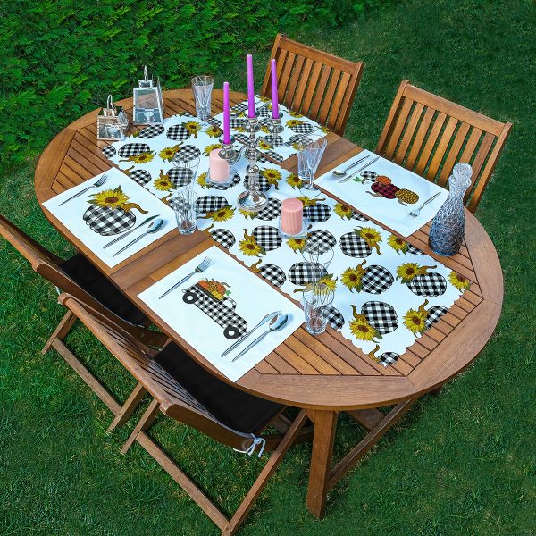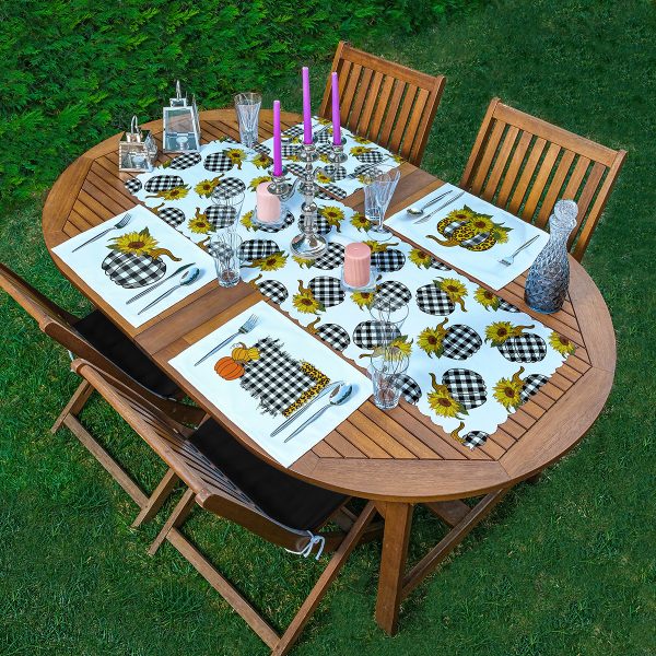 4+1 Siyah Ekose Balkabağı Motifli Amerikan Servis & Runner Seti