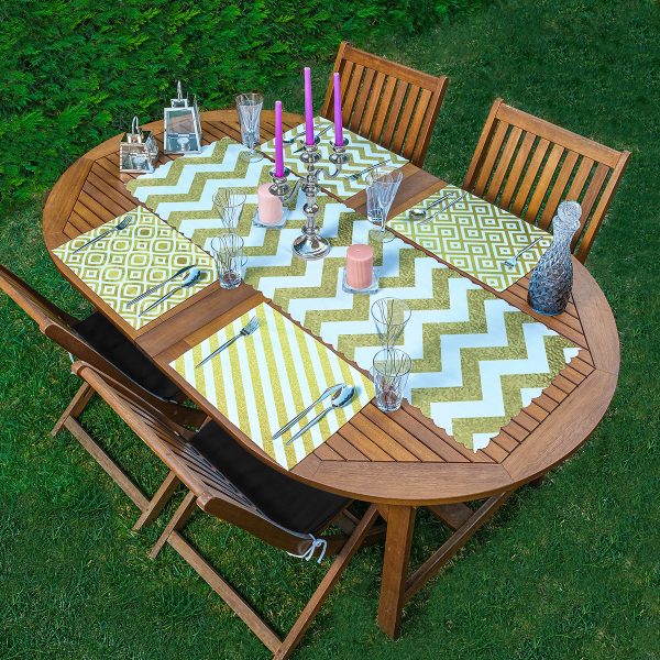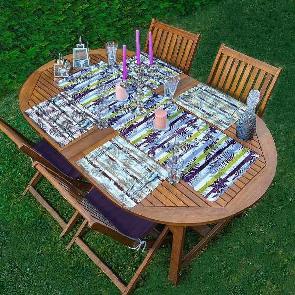 4+1 Renkli Çizgi Zeminli Yaprak Tasarımlı Amerikan Servis & Runner Seti