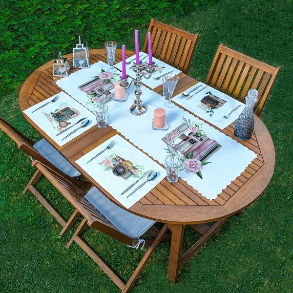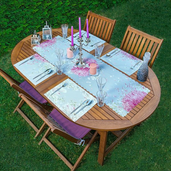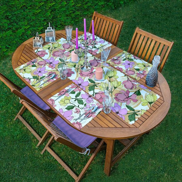 4+1 Renkli Gül Motifli Amerikan Servis & Runner Seti