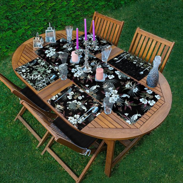 4+1 Siyah Zemin Çiçek Tasarımlı Amerikan Servis & Runner Seti