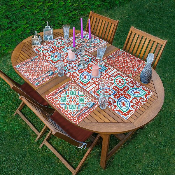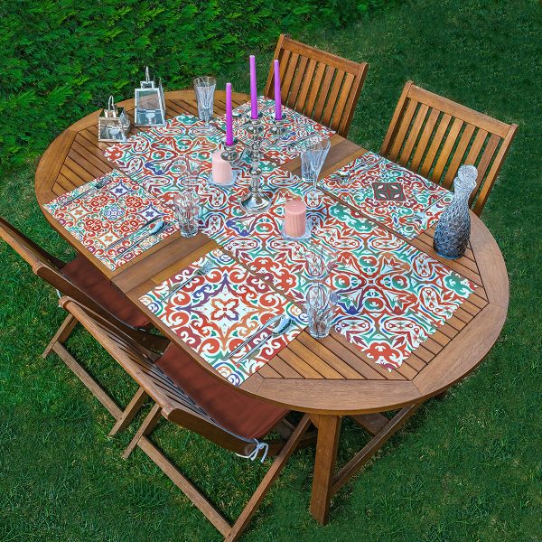 4+1 Renkli Çini Desenli Modern Amerikan Servis & Runner Seti