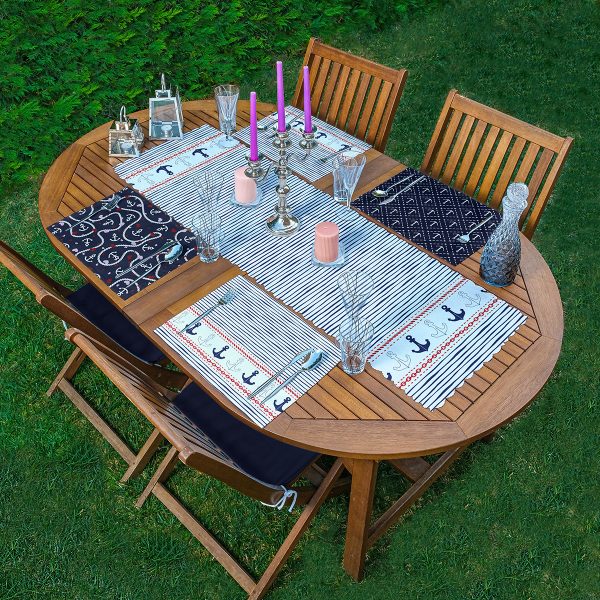 4+1 Lacivert Çapa Tasarımlı Amerikan Servis & Runner Seti