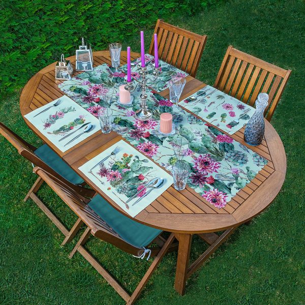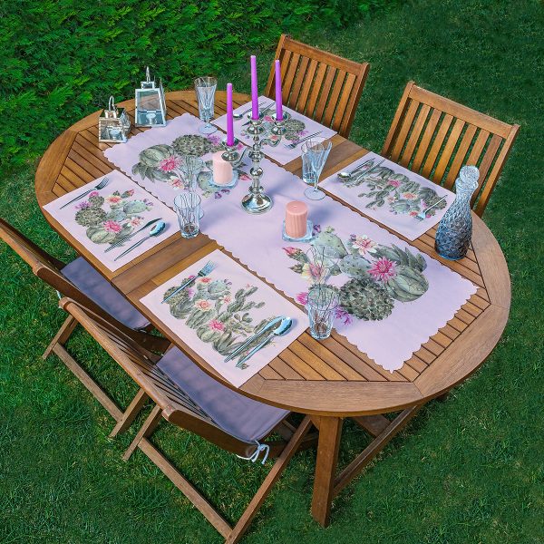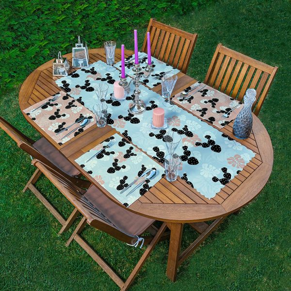 4+1 Kaktüs & Yaprak Motifli Amerikan Servis & Runner Seti