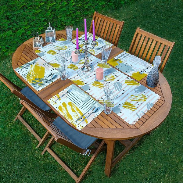 4+1 Beyaz Zemin Fırça Darbeleri Çizimli Amerikan Servis & Runner Seti