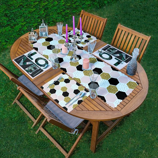4+1 Gold Detaylı Geometrik Çizimler Amerikan Servis & Runner Seti