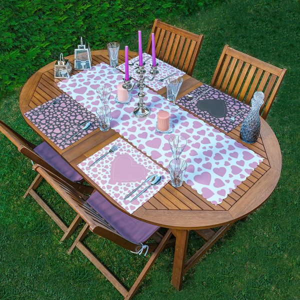 4+1 Pembe Renkli Geometrik Love Tasarımlı Amerikan Servis & Runner Seti