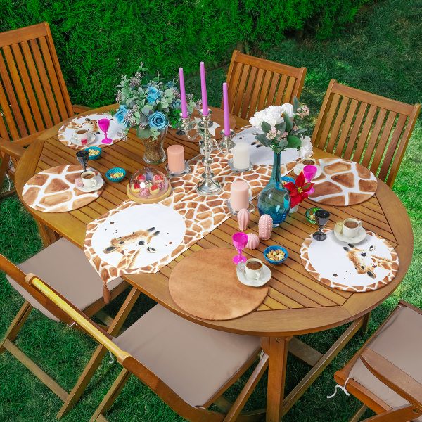 Realhomes 6+1 Kahverengi Zürafa Özel Tasarımlı Dijital Baskılı Püsküllü Runner ve Yuvarlak Servis Altlığı & Supla Seti