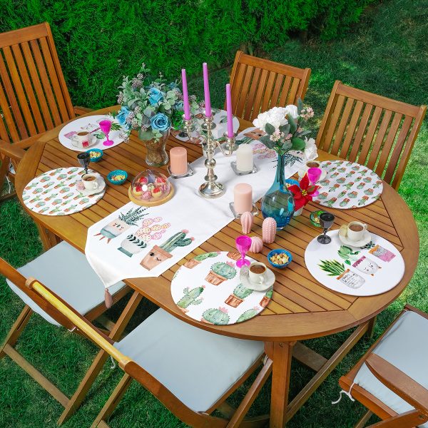 Realhomes 6+1 Minimal Kaktüsler Özel Tasarım Modern Püsküllü Runner ve Yuvarlak Servis Altlığı & Supla Seti