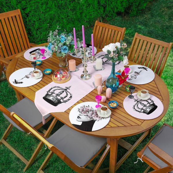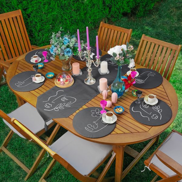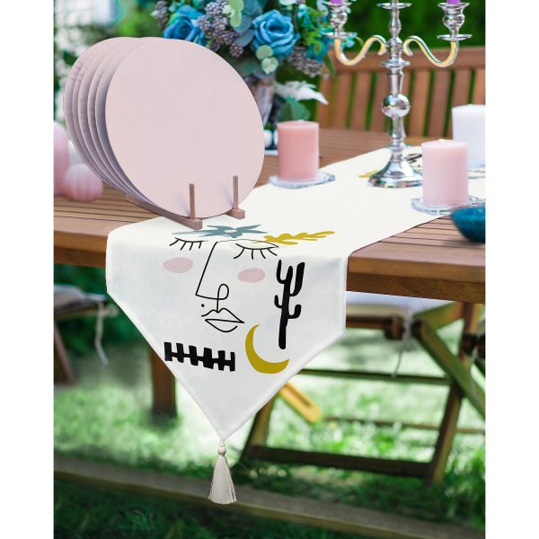 Realhomes 6+1 Kadın Silüet Motifli Özel Tasarım Dijital Baskılı Püsküllü Runner ve Yuvarlak Servis Altlığı & Supla Seti