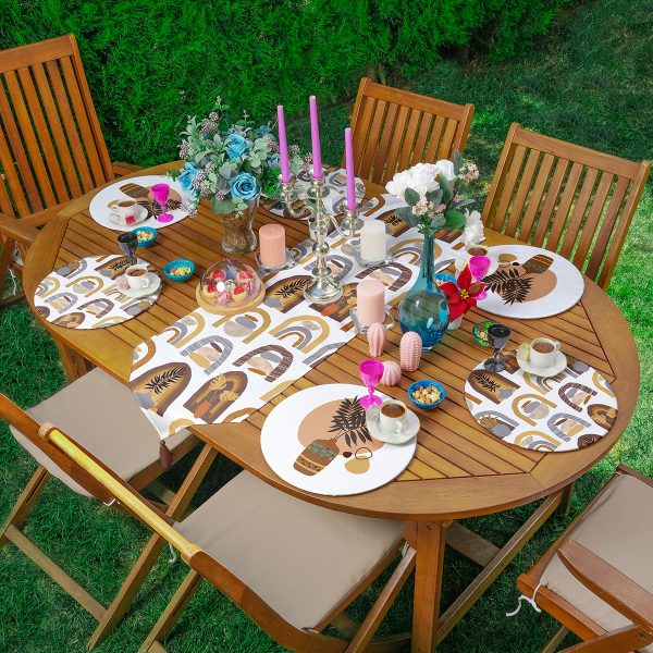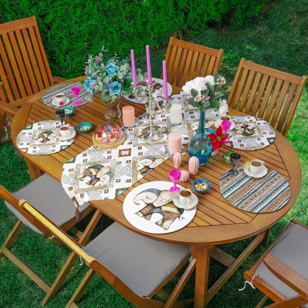 Realhomes 6+1 Renkli Ogea Tasarımlı Dijital Baskılı Modern Püsküllü Runner ve Yuvarlak Servis Altlığı & Supla Seti