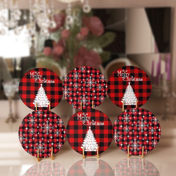 6’lı Ekose Temalı Mery Christmas Tasarımlı Servis Altlığı & Supla