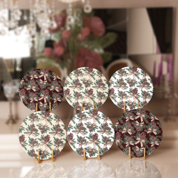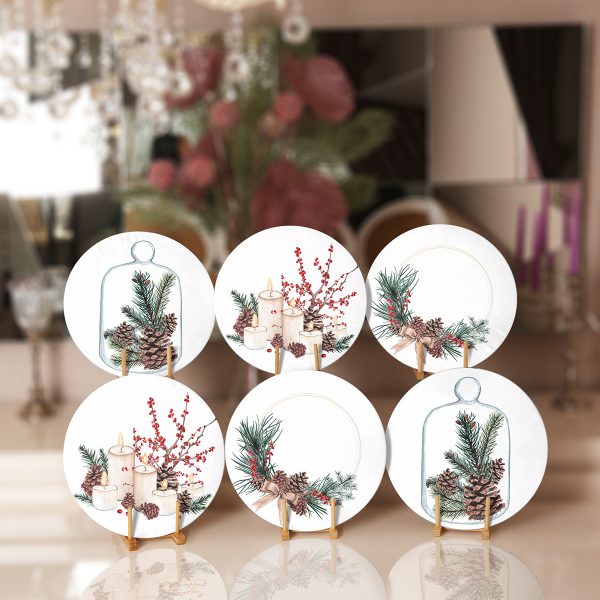 6’lı Kozalak & Mum Tasarımlı Yılbaşı Temalı Servis Altlığı & Supla