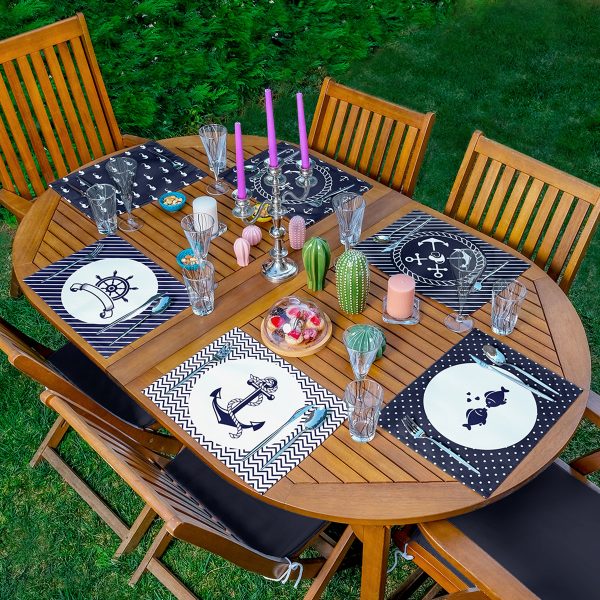 Realhomes Lacivert Zeminli Çapa Desenli Dijital Baskılı Modern 2’li Yuvarlak Servis Altlığı – Supla
