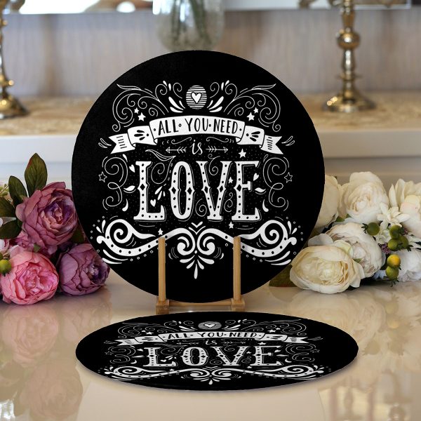 Realhomes Siyah Love Dijital Baskılı Modern 2’li Yuvarlak Servis Altlığı – Supla