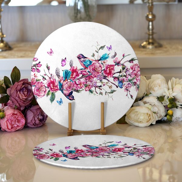 Realhomes Şarmaşık Gül Desenli Kuş Motifli Dijital Baskılı Modern 2’li Yuvarlak Servis Altlığı – Supla