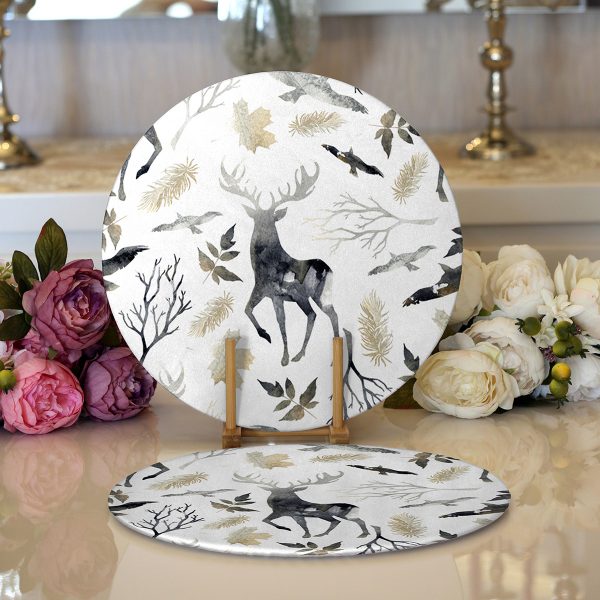 Realhomes Gri Zeminde Geyik Desenli Dijital Baskılı Modern 2’li Yuvarlak Servis Altlığı – Supla