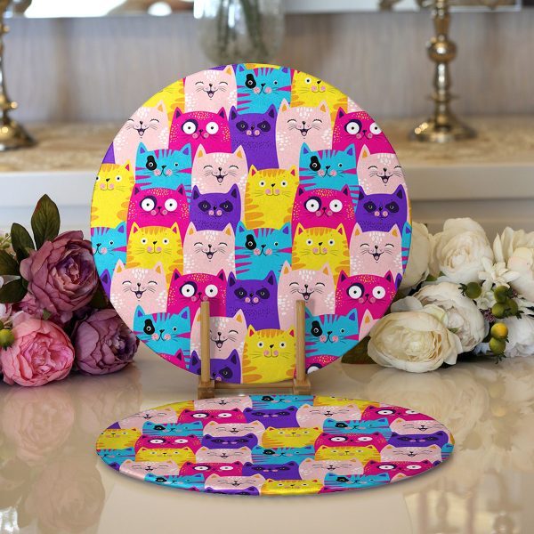 Realhomes Renkli Kedicikler Çocuk Odası Özel Tasarım Modern 2’li Yuvarlak Servis Altlığı – Supla