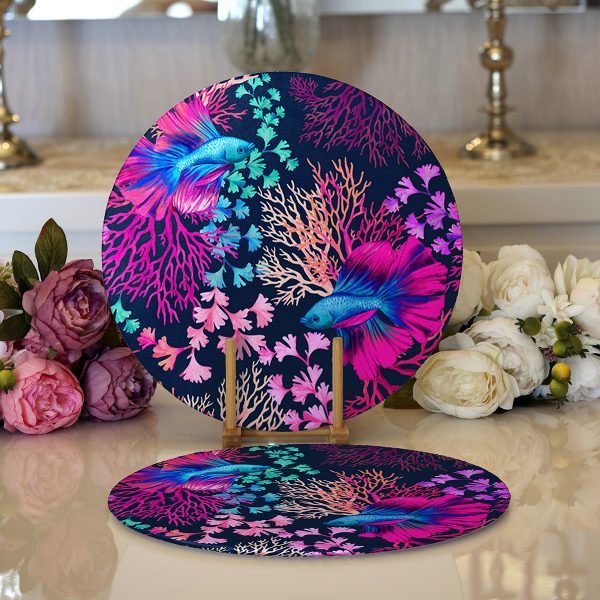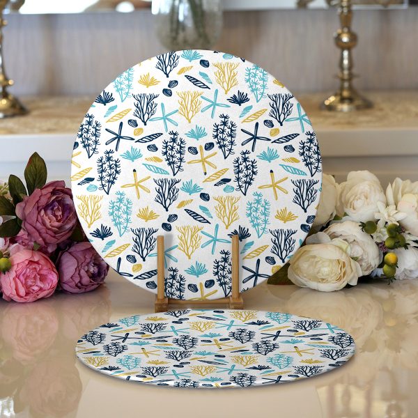 Realhomes Beyaz Zemin Üzerinde Renkli Deniz Motifli 2’li Yuvarlak Servis Altlığı – Supla